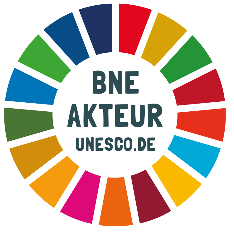 Seit März 2025 werden wir durch unsere Aktivitäten auch in der BNE- Liste als UNESCO-Akteure gelistet. Die Bundesregierung beteiligt sich an der Umsetzung des UNESCO-Rahmenprogramms „Bildung für nachhaltige Entwicklung: Die globalen Nachhaltigkeitsziele verwirklichen“ – kurz „BNE 2030“. Das federführende Ressort ist das Bundesministerium für Bildung und Forschung (BMBF). Dieses hat bereits zur Umsetzung des vorherigen UNESCO-Weltaktionsprogramms „Bildung für nachhaltige Entwicklung“ eine Nationale Plattform BNE und mehrere Foren eingerichtet, welche auch das neue UNESCO Programm „BNE 2030“ begleiten.